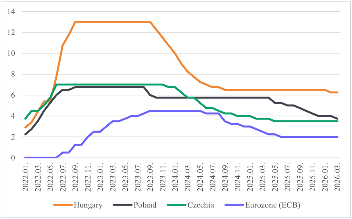Base rate developments in our region and the Eurozone (%)Source: Bank for International Settlements